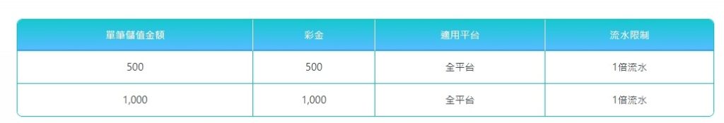- 儲值1,000點 → 送1,00 點