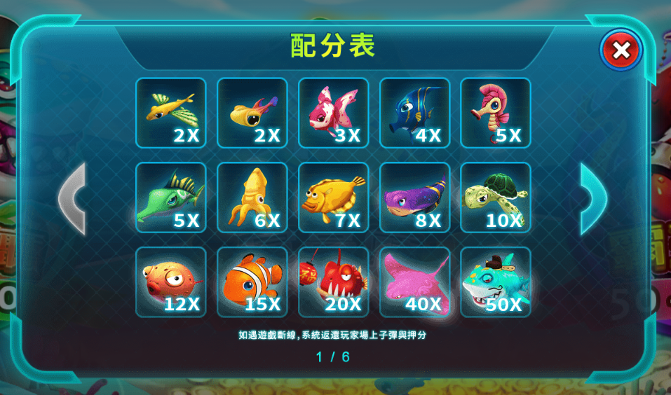 • 遊戲內提供不同倍率的炮彈,倍率越高,捕獲大魚的機率與獎勵也越大。