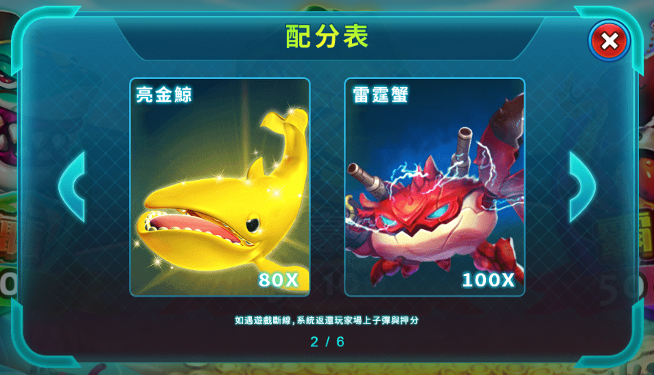 • 雷霆蟹(100x)金鯨(80x):超高價值魚種,擊中即可獲得豐厚獎勵。