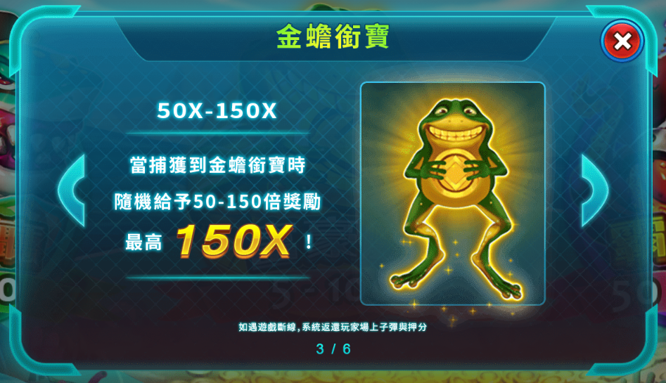 • 金蟾銜寶(50x-150x):捕獲後可獲得隨機50-150倍的獎勵。