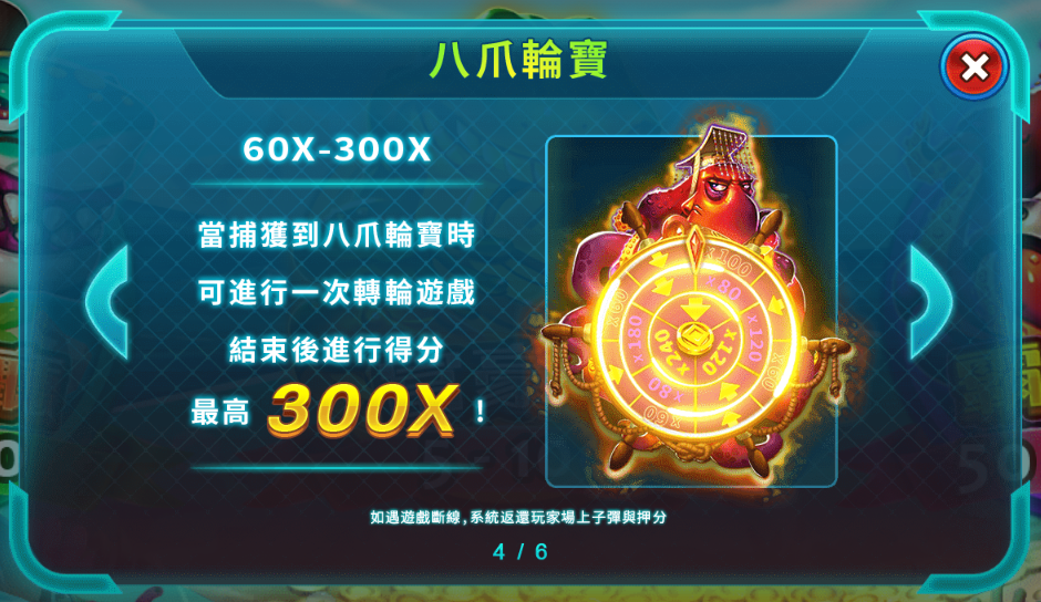 • 八爪輪寶(60x-300x):觸發轉輪遊戲,最高可贏得300倍獎勵。